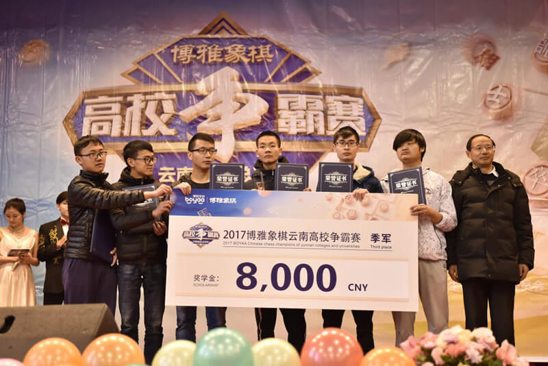 经过两天整整九轮的激烈角逐,2017年博雅象棋高校联盟争霸赛总决赛冠军于昨日出炉,昆明理工大学战队以领先第二名云南大学战队7分的绝对优势夺得桂冠。至此,为期一个月吸引了8000余名大学生参与的赛事圆满结束。